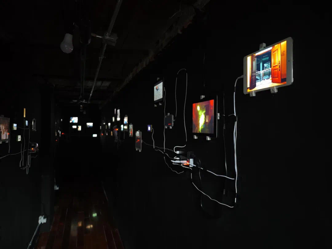Film screenings present similar challenges. The approval process for theatrical release in China is notoriously strict, making independent screenings both rare and risky. Xiaozu regularly screens challenging short films by independent directors. One of their long-term projects is the Video Passageway — a dark, narrow corridor filled with second-hand iphone / ipads displaying monthly rotating video works by mainly local performance artists. There is nowhere to sit; viewers must walk slowly into the damp, narrow space. The experience itself becomes a challenge to the senses and to the viewer’s attention span.
